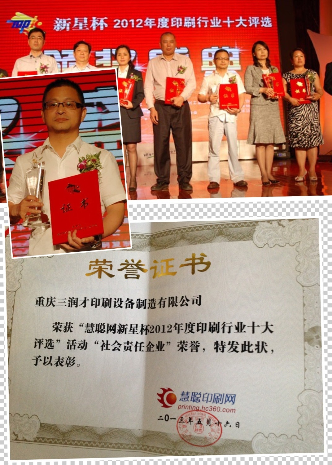 2012年度印刷行業十大評比行業社會義務企業獎:重慶三潤才印刷裝備制作無限公司
